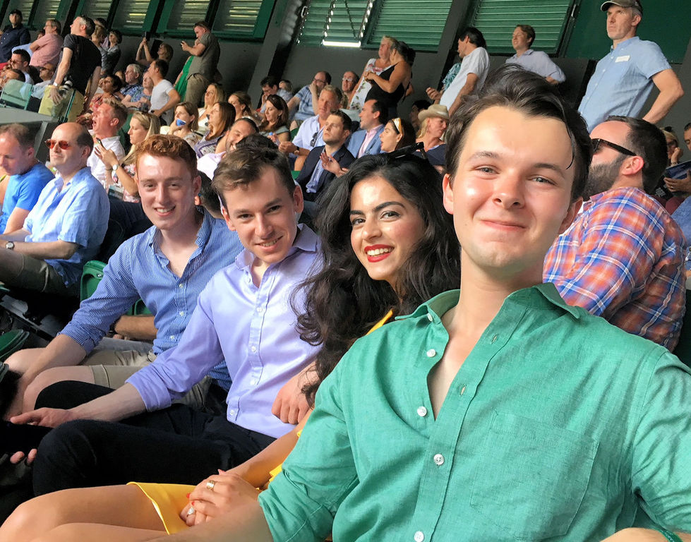 A scorching day on Centre Court, watching Nidal progress effortlessly, and Novak Djokovic grumpily taking on Kyle Edmund and the pro-Brit crowd, who were pumped up after an England win in the World Cup (played offstage, but watched on a thousand mobile phones).